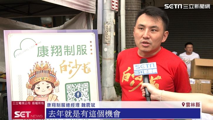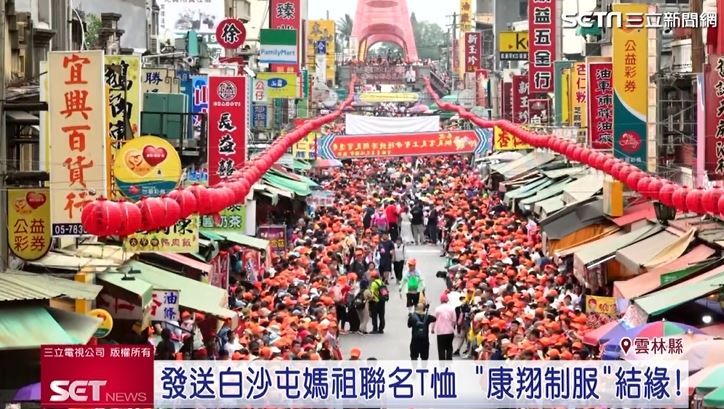 白沙屯媽祖進香活動熱烈展開,大批香燈腳跟隨神轎腳步,穿梭在雲林北港街頭,沿途不僅信仰氛圍濃厚,也有不少企業設置服務點,提供補給與結緣品。其中,在地老字號企業「康翔制服」連續多年參與,以實際行動回饋社會,發送白沙屯媽祖聯名T-shirt,吸引不少信眾駐足排隊。