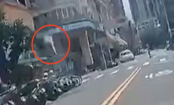 台中市西屯區驚傳巨響!位於寶慶街上的「勇建通商大樓」,今(21)日中午12時許,大樓外牆疑似因屋齡老舊,有一大塊巨型空心磚從高處砸落,險些擊中路邊販售甜甜圈的小攤販餐車,所幸當時攤販老闆當時正在備料、尚未營業,否則後果難料。
