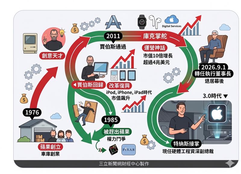 現在,接力棒交到了「賈伯斯 3.0」特納斯(John Ternus)手上。 特納斯擁有賈伯斯式的「產品設計背景」,也具備庫克式的「冷靜執行力」。他在 2026 年接任 CEO,真正的挑戰是如何在「後庫克時代」,再次像賈伯斯一樣,用一項全新的產品(例如 AI 穿戴或機器人)震撼全世界。 這場跨越 50 年的蘋果演義,特納斯要如何續寫,全世界都在看。