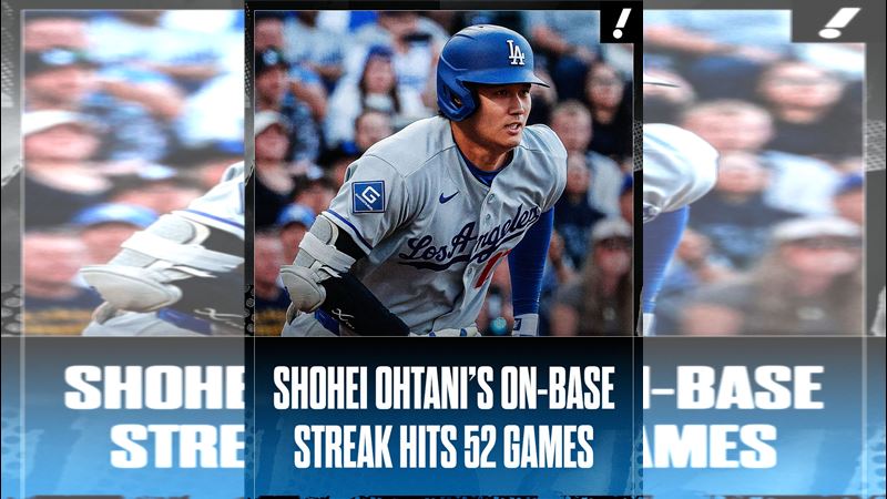 道奇21日12:3大勝洛磯,大谷翔平持續在隊史的上壘紀錄榜上攀升,3局上他敲出敲出右外野安打,將連續上壘場次推進到52場,距離追平隊史第2的格林(Shawn Green)僅剩1場。