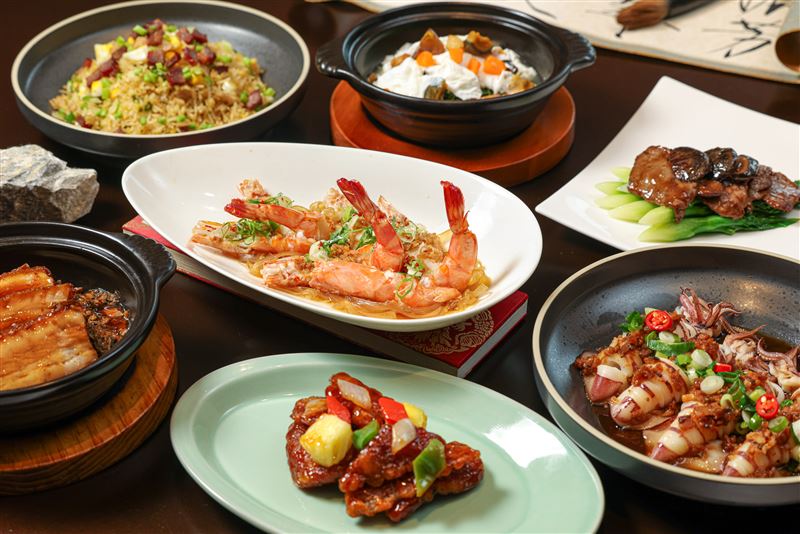 港式點心準備晶瑩鮮蝦餃、北菇蒸燒賣、金珠鹹水餃、蜂巢炸芋角、古法糯米雞、醬皇金錢肚、江南素菜餃、XO醬蘿蔔糕等豐富品項,款款皆展現出港點的細膩工序與經典風味。主菜部分有肉品及海鮮料理兩大類,前者推出鹹香下飯的梅菜扣肉、酸甜可口的糖醋咕嚕肉、鮮香滑嫩的豆花肥腸及鑊香滿溢的港仔牛肉炒芥藍,道道呈現粵式熱炒的精湛火候與迷人鍋氣。後者則有辛香涮嘴的豉椒炒花甲、外酥內嫩的蔥薑斑腩煲、鮮嫩彈牙的蒜茸粉絲開邊蝦與海味盡出的潮式冬菜蒸小卷,其中,大排檔必點菜餚「蒜蓉粉絲開邊蝦」嚴選新鮮大草蝦,蝦味濃郁且肉質彈牙鮮嫩,鋪於底層的粉絲吸滿蒜蓉醬汁與鮮蝦精華,是香港人懷念的吮指美味。
