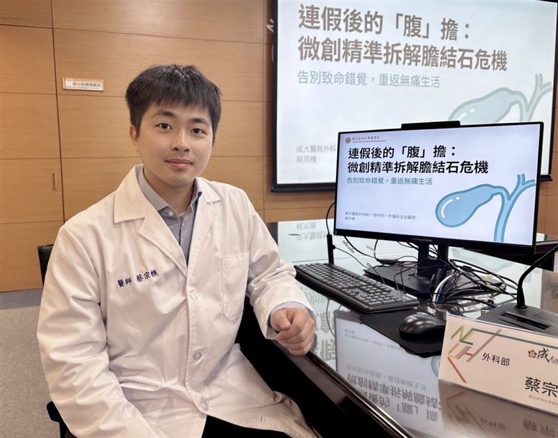 外科團隊安排「腹腔鏡膽囊切除手術(Laparoscopic Cholecystectomy, LC)」,成功切除病灶,順利替陳先生解決長期腹痛困擾。成大醫院一般外科醫師蔡宗樵表示,臨床上有高達三成的膽結石患者,會把「膽絞痛」誤以為是「胃痛」,傻傻吃胃藥而延誤就醫。