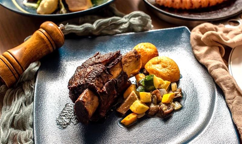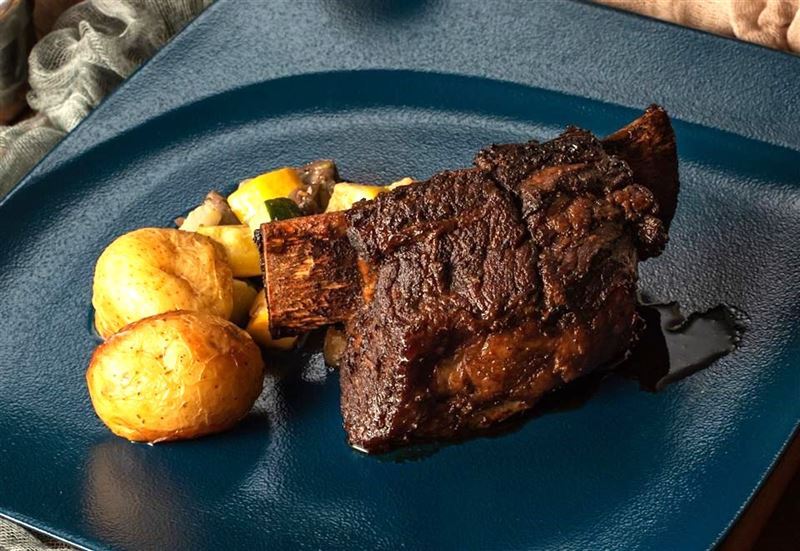 波麗路創始本店這道「台塑牛小排」選用厚切18盎司帶骨牛小排,將帶骨牛肉先煎至表面金黃,再以紅標米酒、蒜頭、洋蔥與醬油等台味元素慢火燉煮約1個半小時,讓原本帶筋且厚實的牛小排,呈現外層香氣濃郁、內裡軟嫩多汁的口感,保有肉質Q彈,同時入口即化,是許多老饕指名必點的人氣菜色。