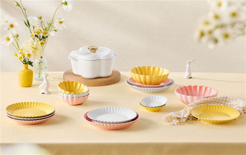 而隨著初春暖陽灑落,萬物迎來綻放時刻,法式餐廚品牌 LE CREUSET 以春日甦醒為靈感,推出一系列以花卉為意象的新品,「花瓣系列」透過細膩浮雕,將櫻花與雛菊的柔美姿態融入鍋具與瓷器之中;「輕荷花妍」則描繪初夏荷花的靈動之美,結合藝術美感與日常實用性,為餐桌注入輕盈優雅的季節氛圍。