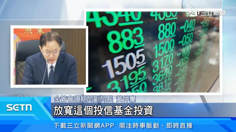 金管會證期局副局長黃仲豪:「放寬這個投信基金投資,單一公司的股票不得超過基金淨值的10%的限制,股票型基金就是共同基金,不含債券型跟平衡型的,另外就是投資股票的主動式ETF,那這是放寬基金種類的部分。」