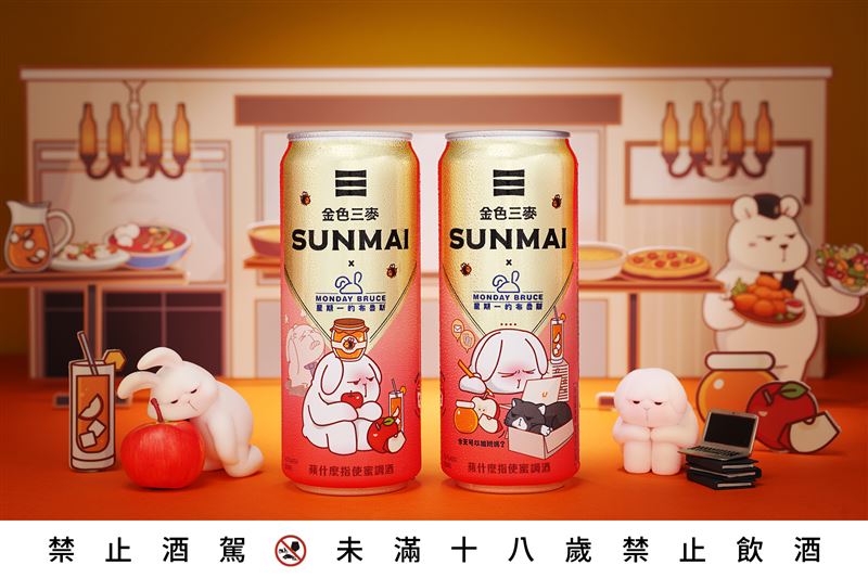 當上班、通勤、開會、回訊息成為日復一日的生活循環,現代人的情緒出口,有時候只是下班後那一口剛剛好的微醺!SUNMAI金色三麥攜手人氣角色品牌「星期一的布魯斯 MONDAY BRUCE」,推出兩款聯名酒款「柚莓錢了調酒」與「蘋什麼指使蜜調酒」,以角色鮮明的社畜日常為靈感,結合討喜療癒的包裝設計與清爽易飲的果香酒感,讓一罐調酒不只是好喝,更成為忙碌生活裡一點帶著共鳴感的可愛安慰。