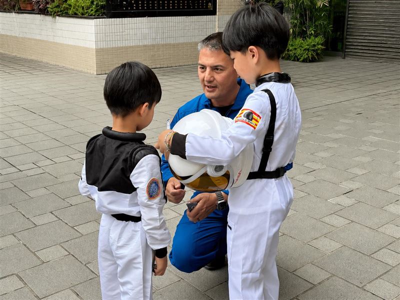首位台裔NASA太空人林琪兒(Kjell N. Lindgren)在《美國在台協會》AIT的協助下,相隔32年返台參訪,表訂的4月21日至25日行程,在台掀起一波太空熱潮。最新曝光畫面中,林琪兒在台北天文館蹲下身與兩名孩童對話,將無重力環境的艱難任務,轉化為孩子聽得懂的語言,傳遞「不要放棄」的精神,令人動容。他也與樂天桃猿交流,與總教練曾豪駒互動、親自揮棒,整體行程自然、真誠。