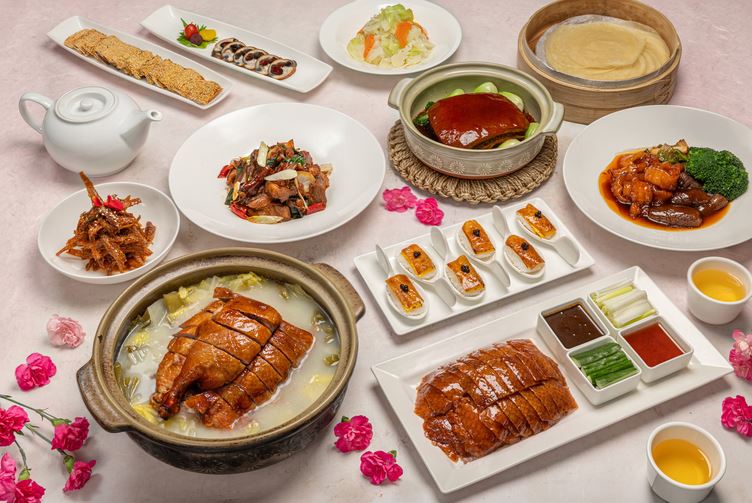 熱門米其林餐廳北馥樓中餐廳敬獻母親節饗宴,米其林推薦烤鴨六人餐每套7,980+10%元,龍蝦泡飯珍饌六人餐每套8,280元+10%。