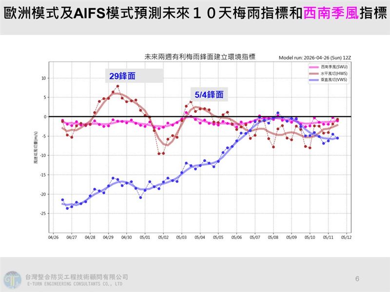 賈新興在YouTube頻道發布影片指出,明日午後,宜蘭、花蓮、台東及桃園以南山區有零星短暫雨;29日午後,台中以北、南投及宜花地區有局部短暫雨,其他地區亦可能有零星短暫降雨。29日深夜至30日,受鋒面及東北風影響,台南以北將轉為局部短暫陣雨或雷雨,宜花東地區亦有零星短暫雨。