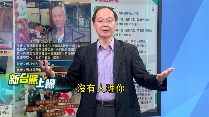 前民眾黨主席柯文哲日前與宜蘭縣長參選人陳琬惠前往市場掃街,不料沿途連續遇到兩位長者開嗆!一名罵他貪污,另一名對他說,「不要再亂啦!台灣只有一個而已」,卻傳出遭小草改字幕幫民眾黨說話。資深媒體人王時齊今(27)日在三立政論節目《新台派上線》中直言,這做法都只能自欺欺人,且柯先後在各領域「爆破」,一連串問題顯示他在年輕人中已沒有瘋狂號召力。