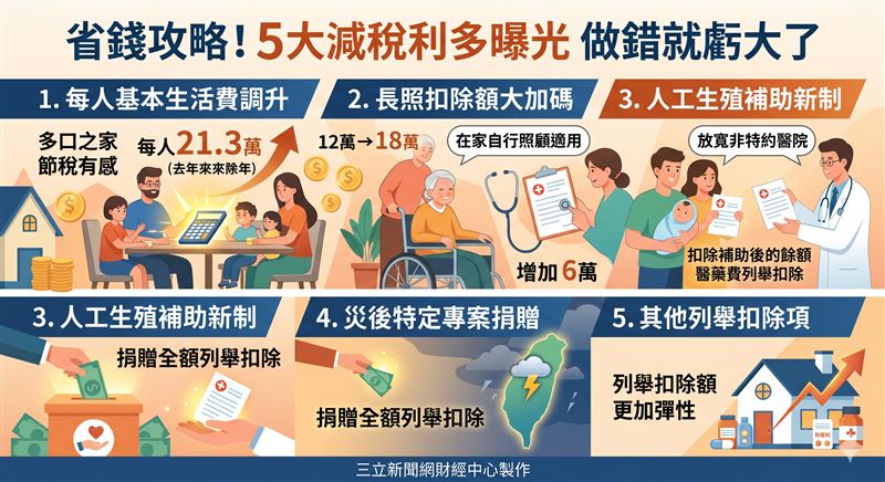 小資族與家庭主婦請注意,省錢的機會來了!114年度綜合所得稅申報即將開跑,高雄國稅局特別趕在報稅季前,為民眾盤點了5大減稅利多。今年不只基本生活費調高,長照扣除額更是一口氣加碼6萬元,配合人工生殖補助新制,要讓納稅人輕鬆完成申報,保住辛苦錢。