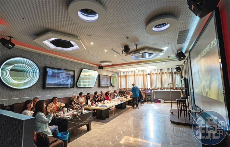 很難想像,在週間上班日下午2點,享溫馨這間旗艦店的6、7樓共約10間包廂已經全滿。走進一間足以容納20多人的包廂,挑高的空間、360度環繞音響,裡面坐滿一群退休族點著最新歌單,正高聲歡唱著。「以前是一個月唱3次,現在是一週唱3次,」一位退休長者邊拿出他的手機,邊與本刊採訪團隊說,「享溫馨唱歌群組就有3個。」