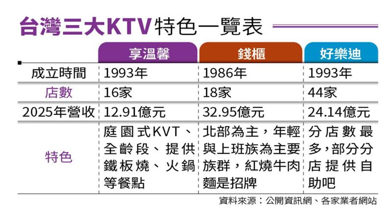 在台灣,KTV被視為超過百億元的成熟市場,除了前2大的錢櫃與好樂迪,還有本週二(28)日上市,有著「KTV南霸天」之譽的享溫馨。身為享溫馨二代、現任總經理李奇霖日前接受本刊訪問坦言,「台灣KYV市場規模高達120億元,享溫馨的KTV營收才不到10億元,市場還很大,接下來,我們將透過KTV娛樂、餐飲、宴會與旅宿等多元化布局,並北上拓點,持續擴張版圖。」