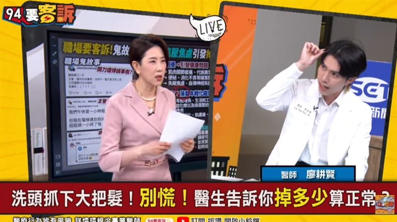 現代人生活忙碌壓力大,不少人隨著年齡增長髮量越來越少,甚至有「落髮有年輕化」的趨勢,「頂上風光」成為現代人普遍面臨的煩惱。三立新聞網《94要客訴》邀請頭皮專業醫師廖耕賢,分享自我檢測方式及頭皮毛髮新知。